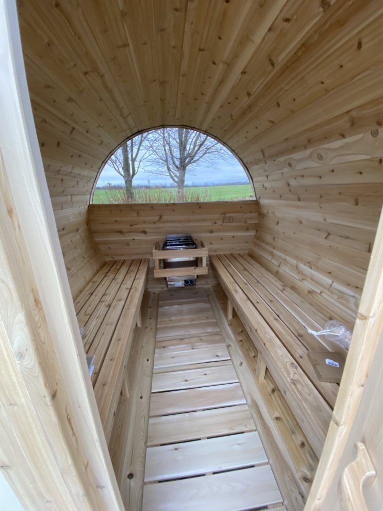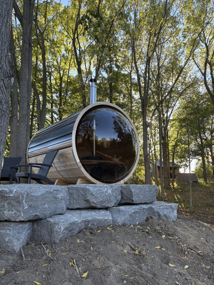 6 ft or 7 ft diameter Canadian White Cedar Wood Fired or Electric stove Sauna rentals also available daily/weekly 226-868-0406